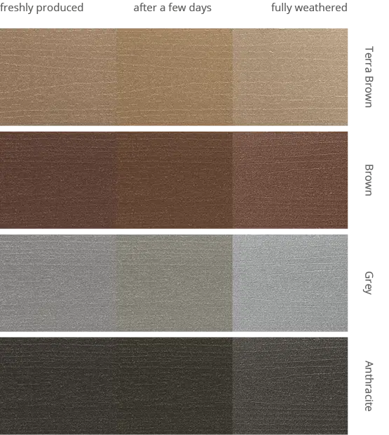 ROBUST je dostupan u sljedećim bojama kao jednobojna terasa od 50 kvadratnih metara: