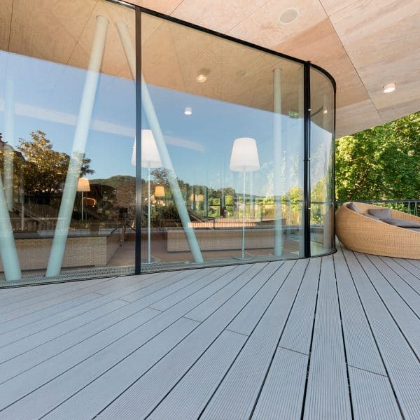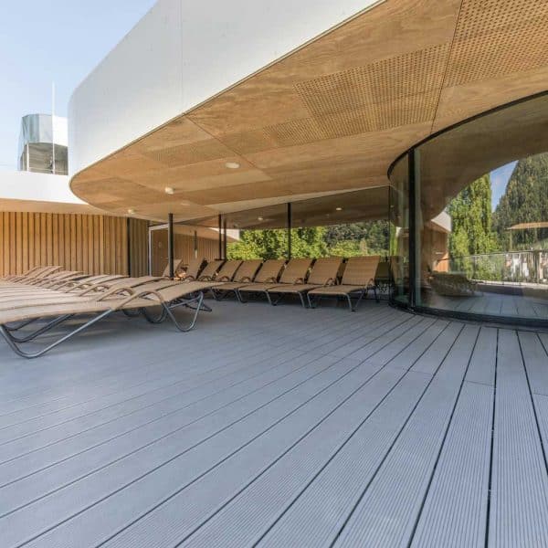Stabilnost i elegancija. ROBUST ima plemenit izgled poput drveta zbog posebno intenzivne teksture. Stabilnost ovog čvrstog poda poziva i na bujna slavlja, ali i na tihe trenutke opuštanja. Ako planirate terasu neobičnog oblika sa zavojima, ovaj pod je savršen za vas. S daskom ROBUST se također mogu optimalno ostvariti skladni prijelazi u vrt. ROBUST se može polagati s obje strane, bilo da je strana s drvenim godovima, bilo da je rebrasta strana. Zahvaljujući visokokvalitetnom drvenom kompozitnom materijalu, ne morate brinuti o špranjama i mogućim pukotinama.